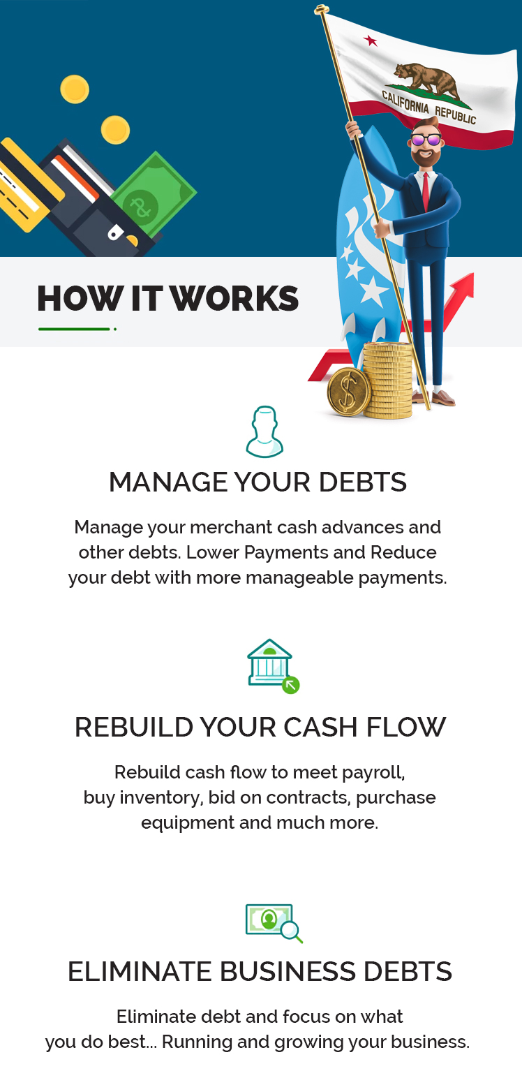 We are a Business debt settlement company. We negotiate with your creditors to lower the debt amount of unsecured loans, like Mca and unsecured business debt.